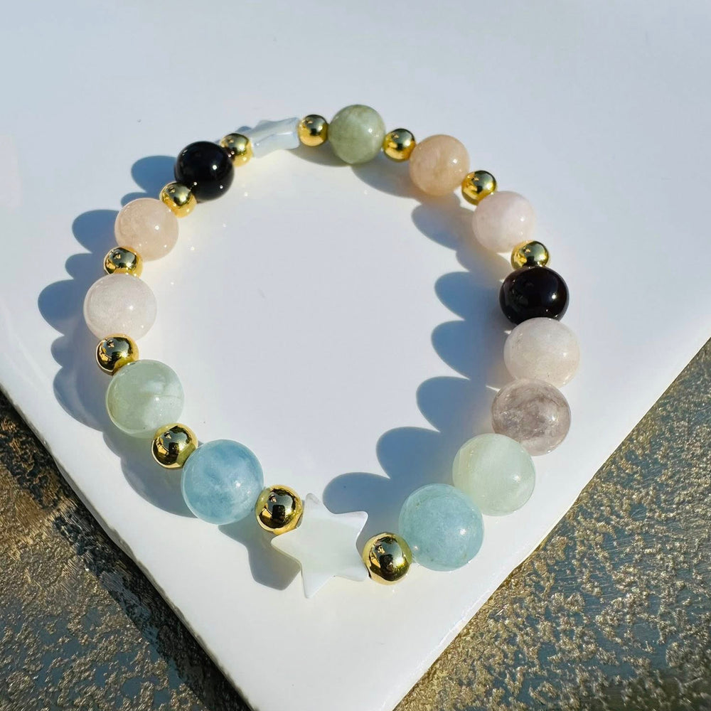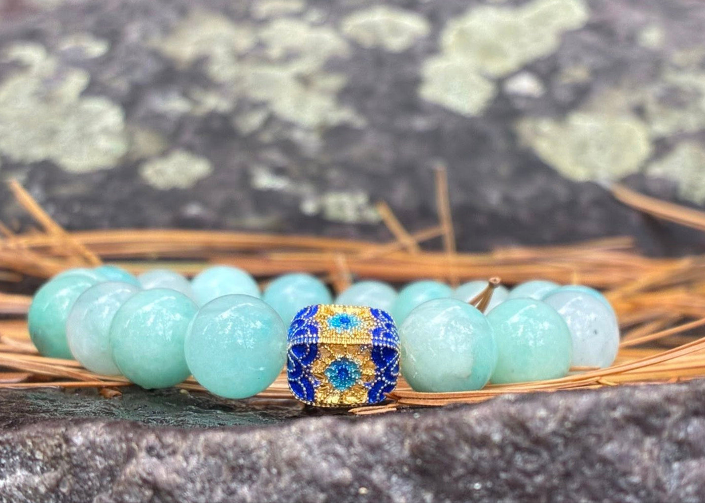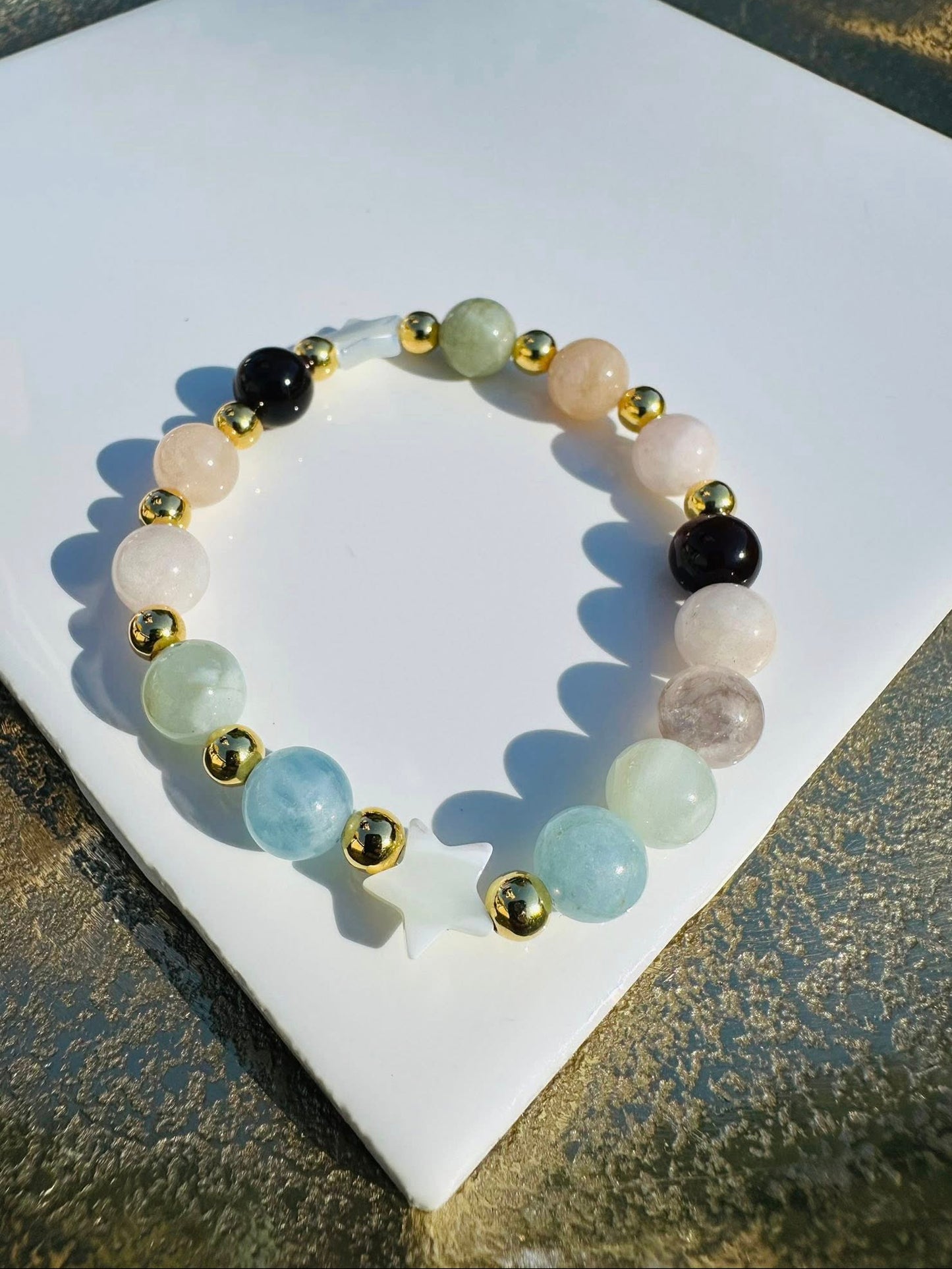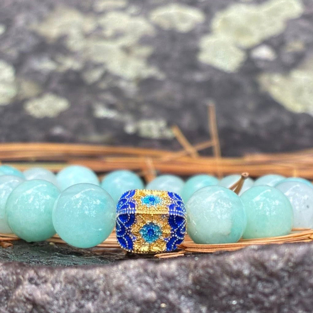 The gold spacer adds a radiant touch, enhancing the bracelet’s calming and uplifting energy.