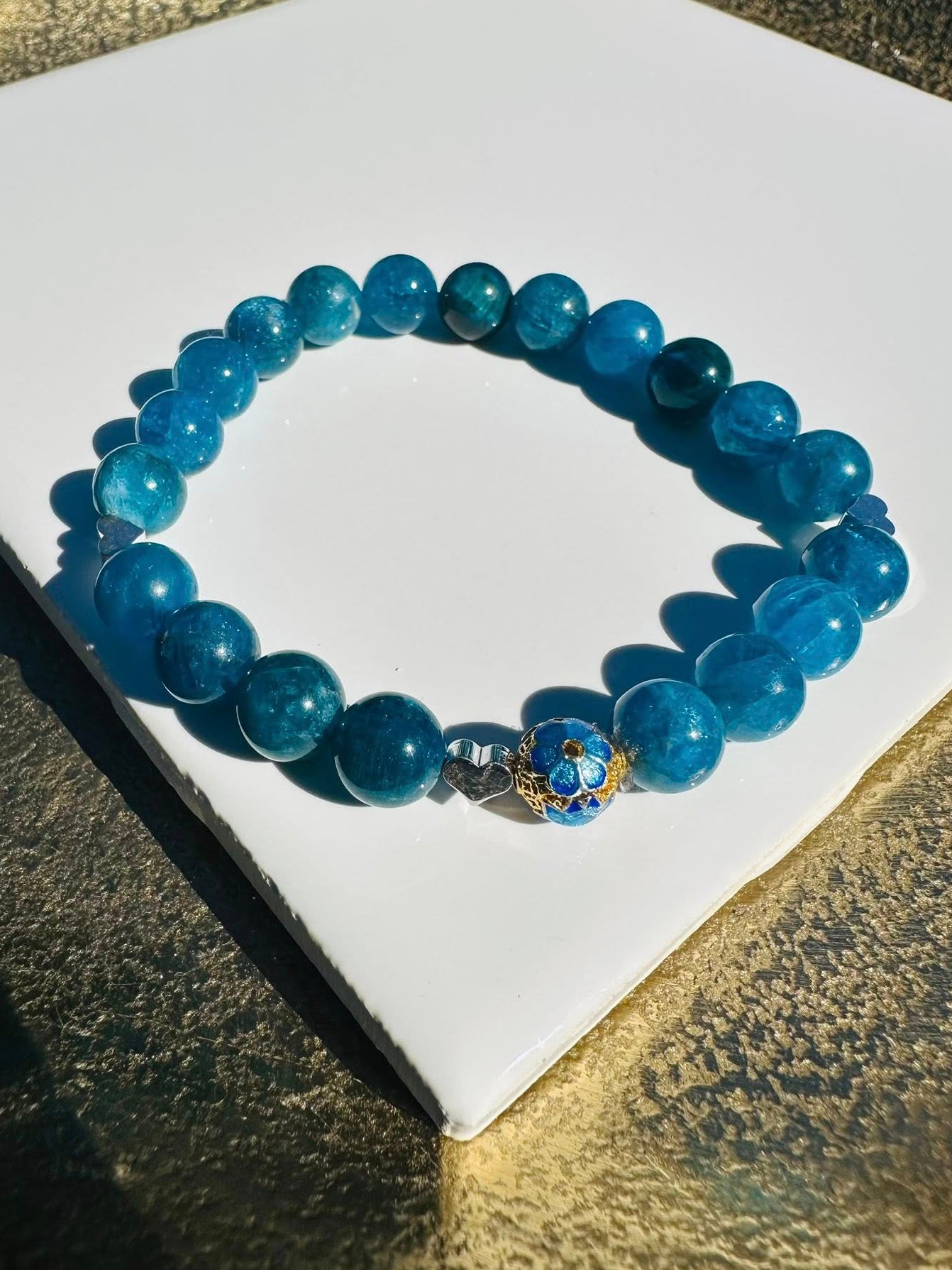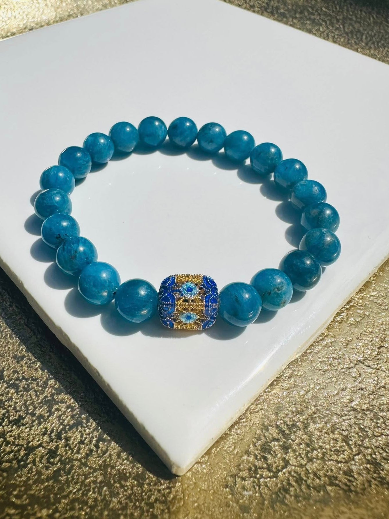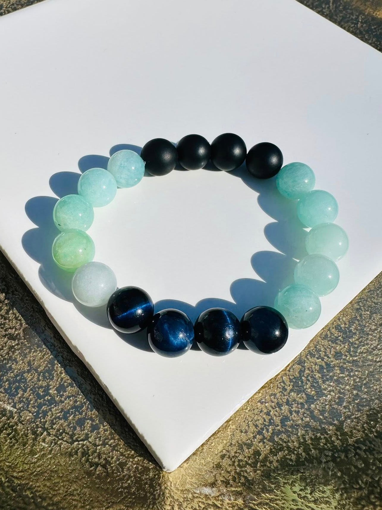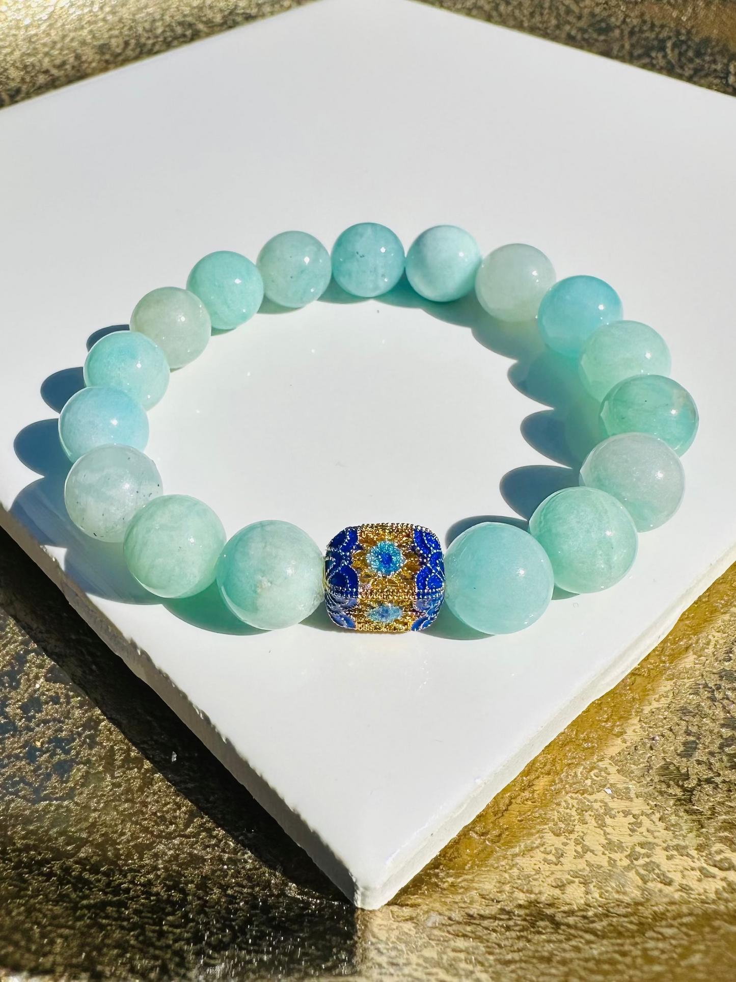 The gold spacer adds a radiant touch, enhancing the bracelet’s calming and uplifting energy.