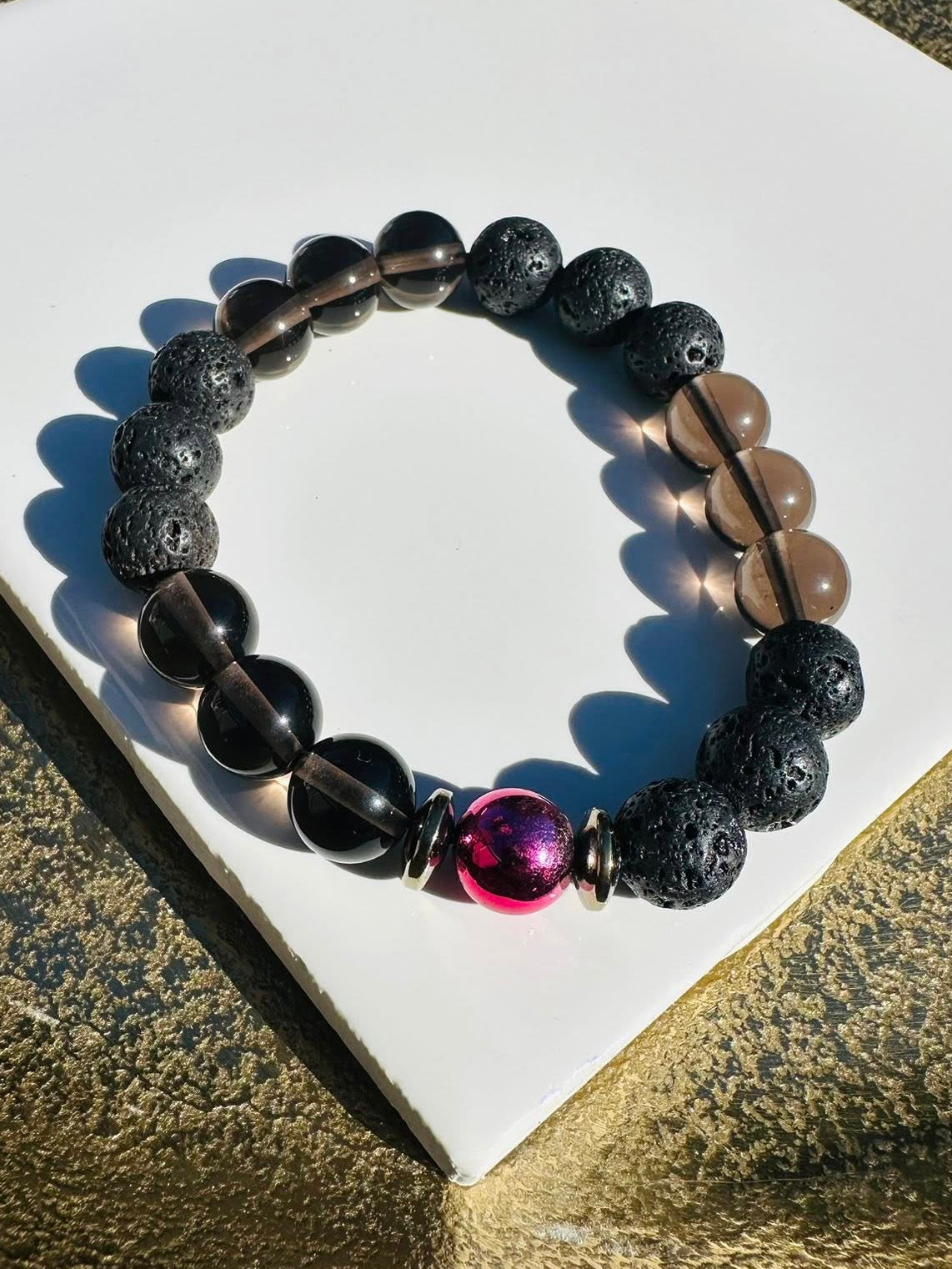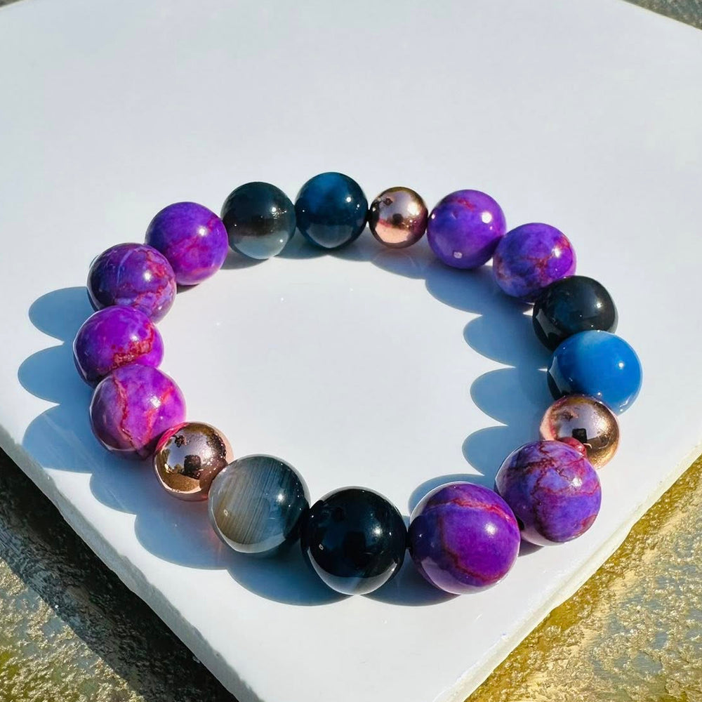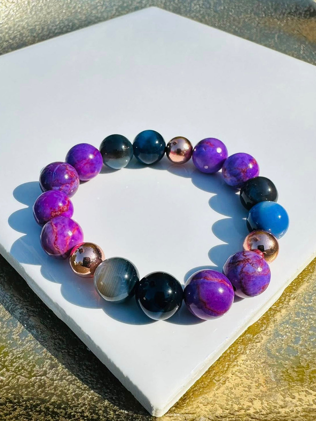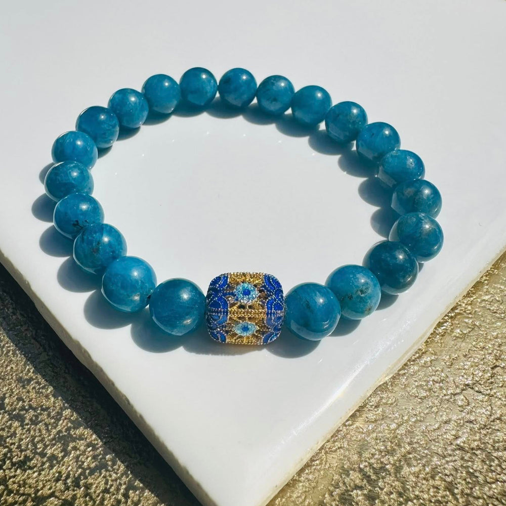 The gold spacer adds a radiant touch, enhancing the bracelet’s calming and uplifting energy.
