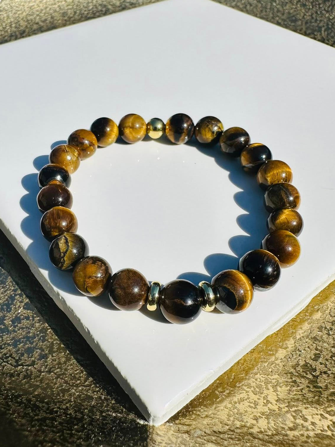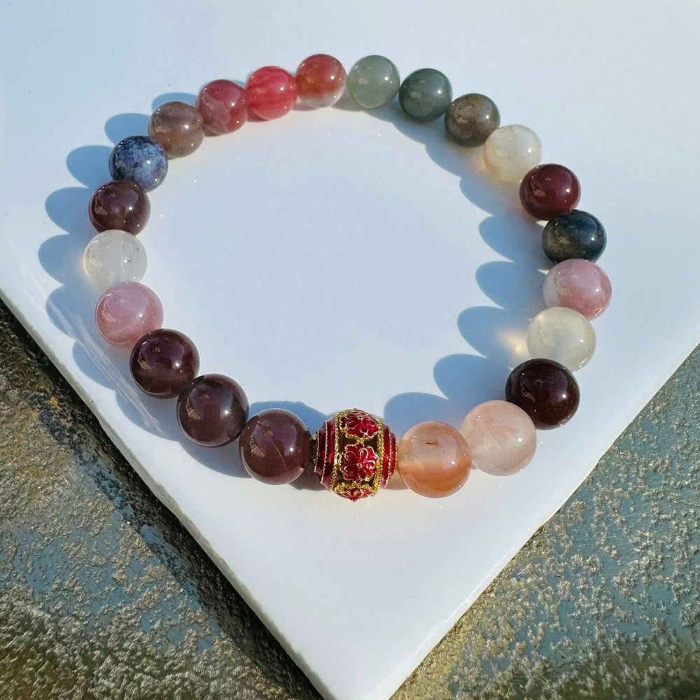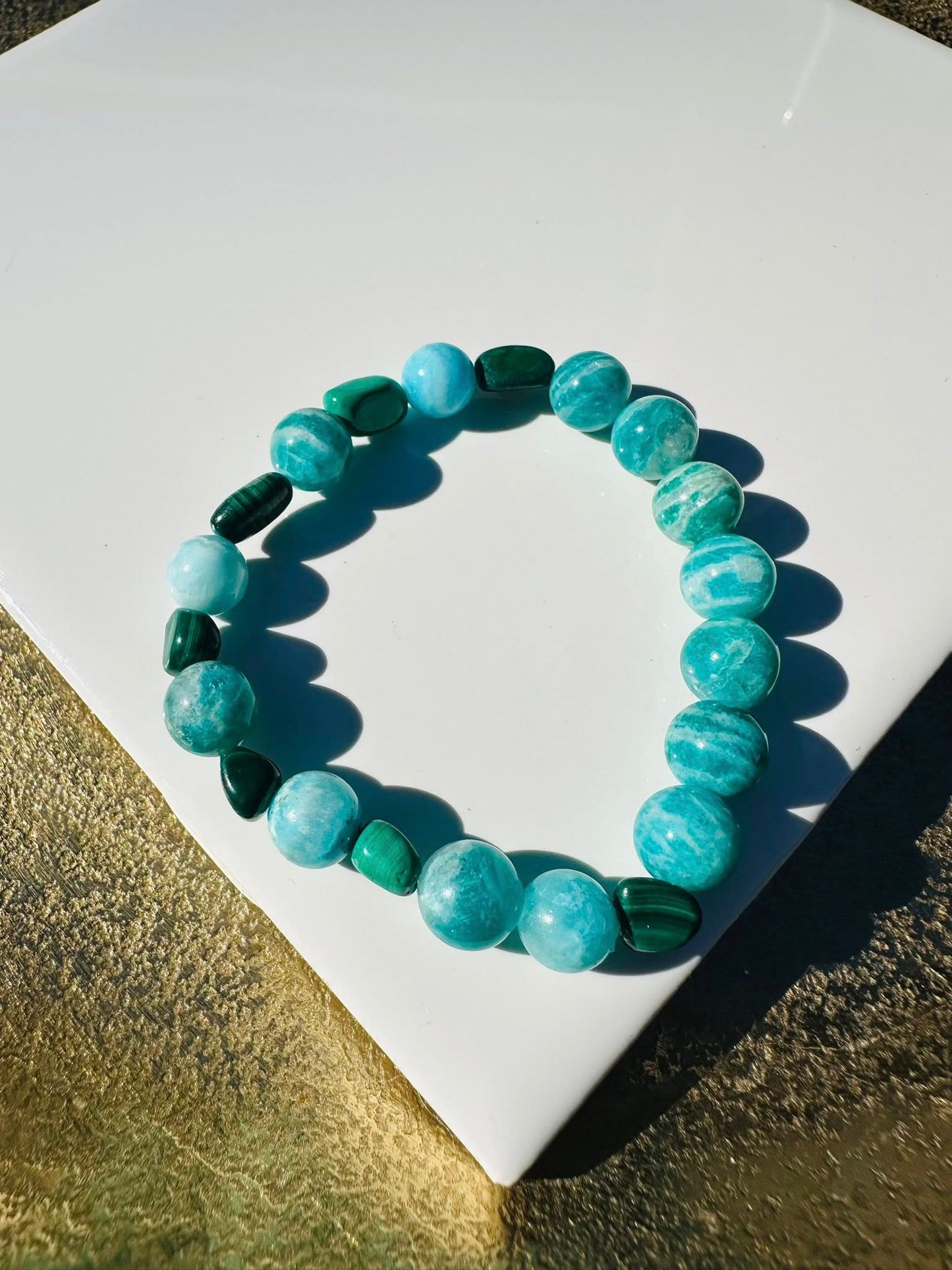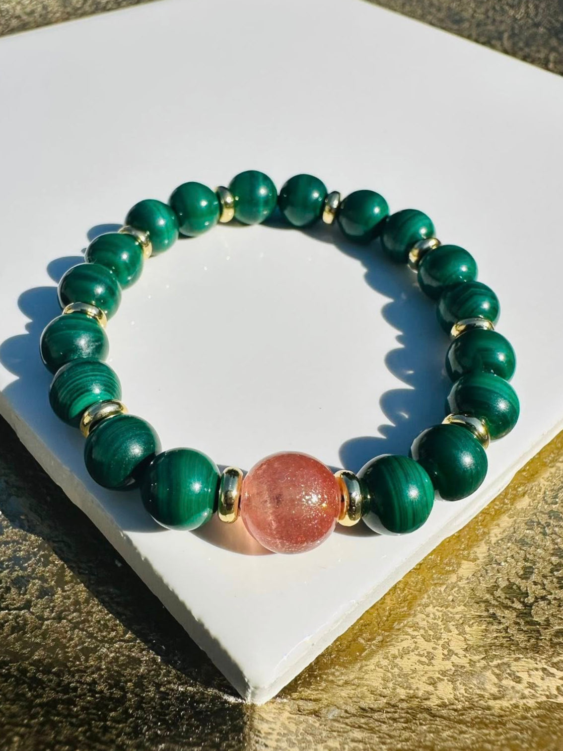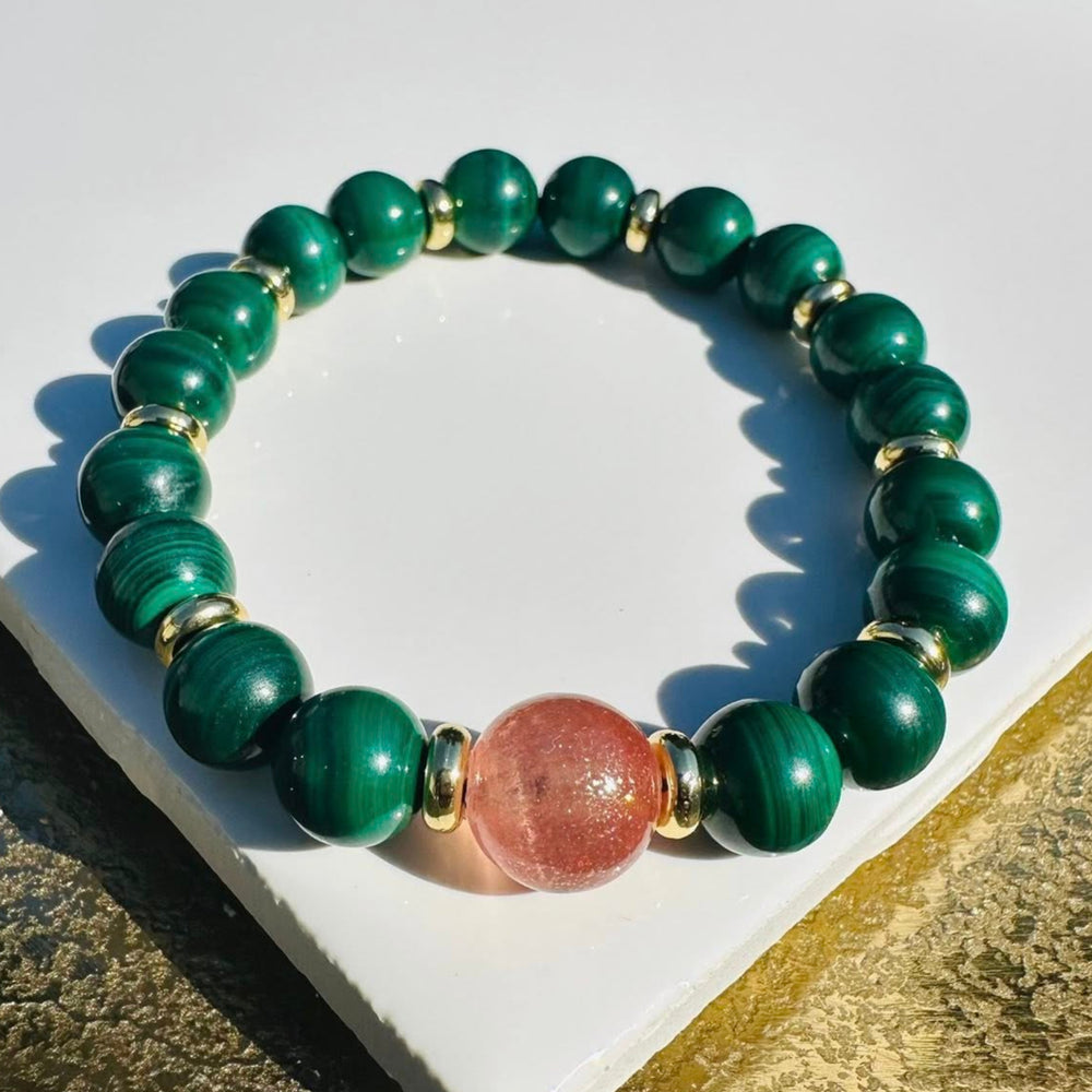 Bathed in golden hour light, this handmade gemstone bracelet embodies calm and clarity — a gentle glow carrying nature’s embrace, a moment of peace.