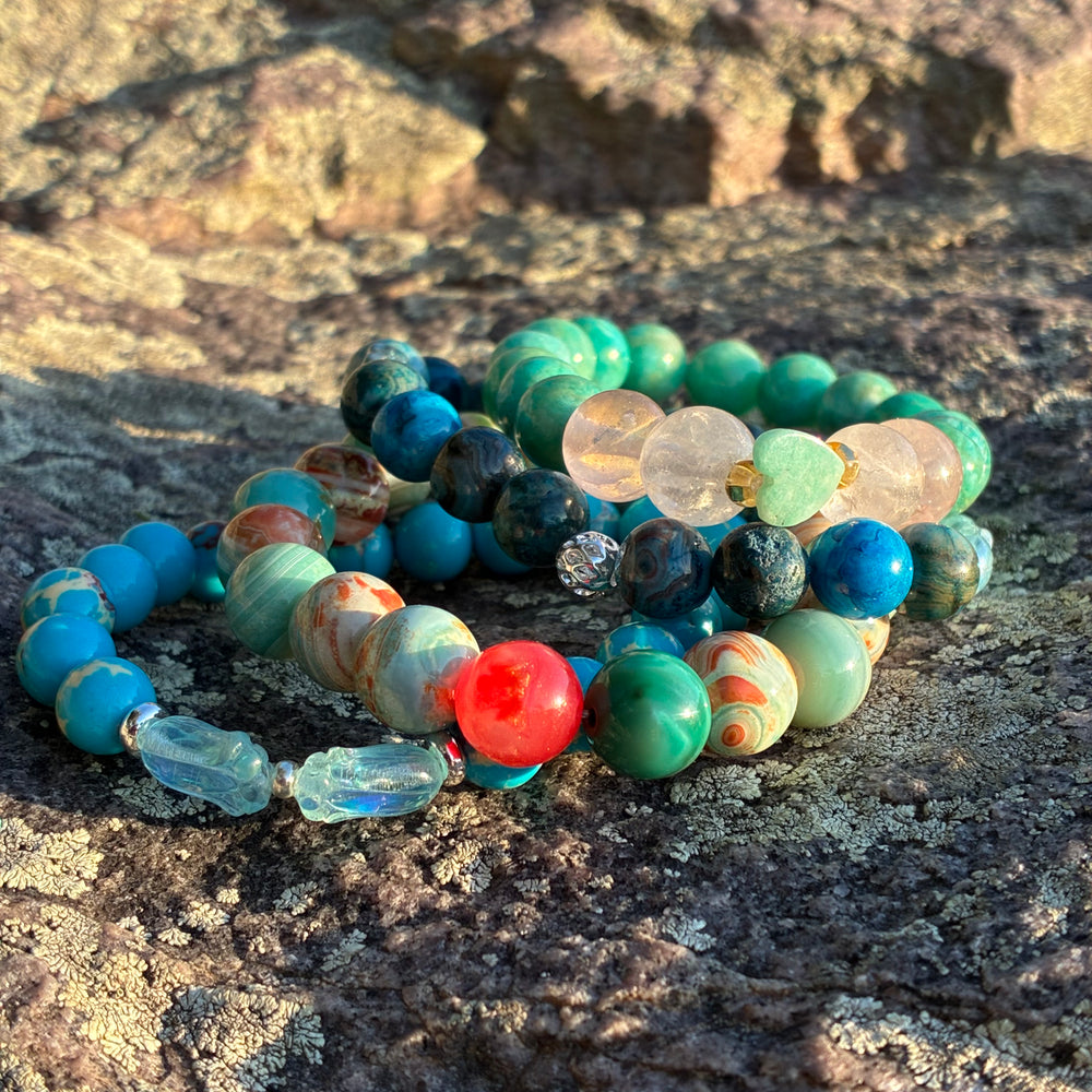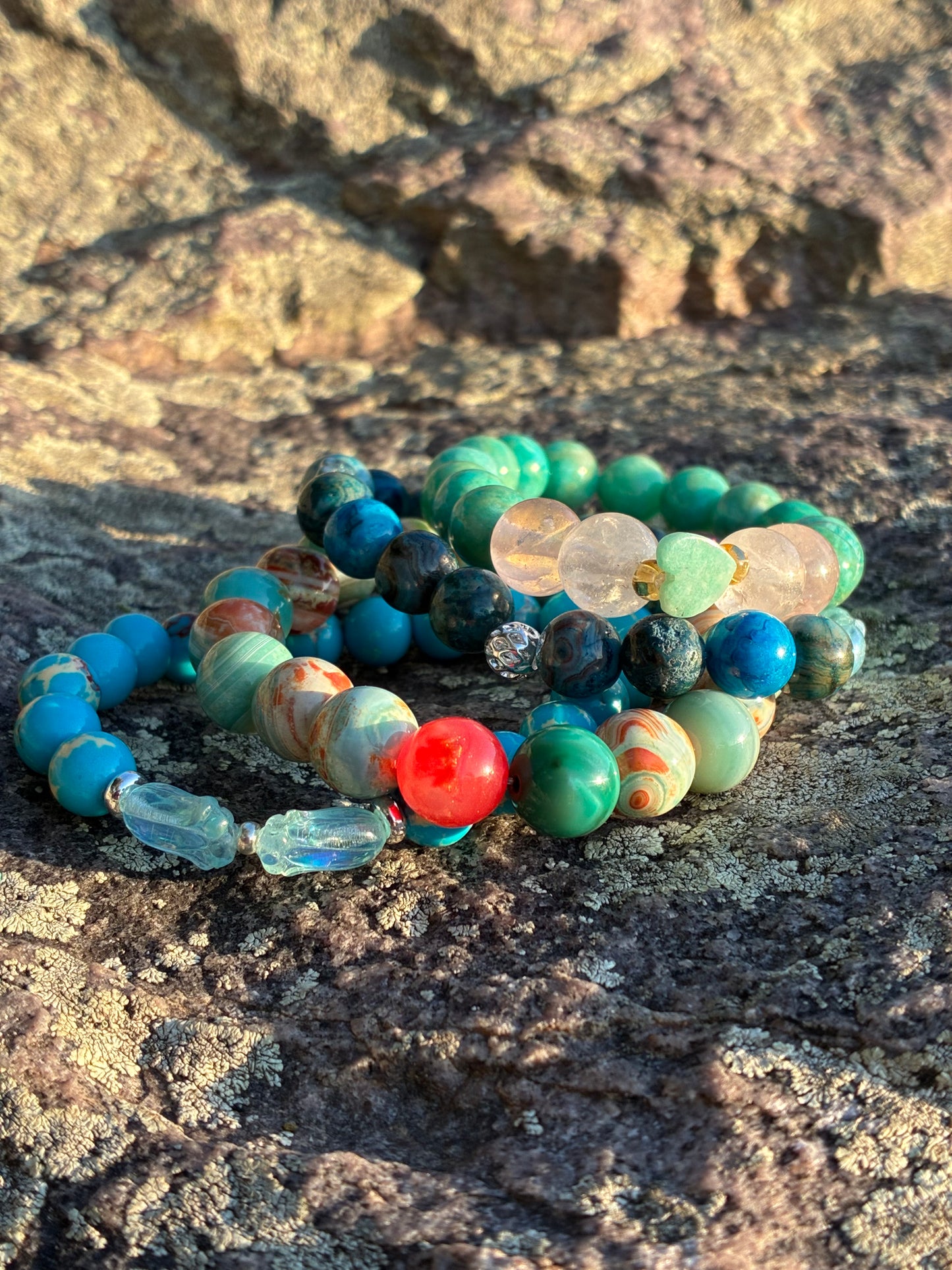 Handmade treasures, each bracelet a singular expression of nature’s beauty.