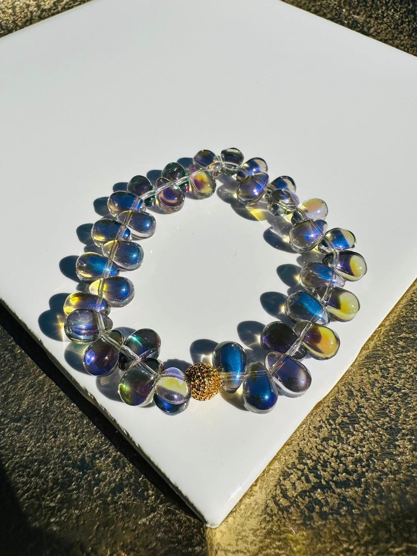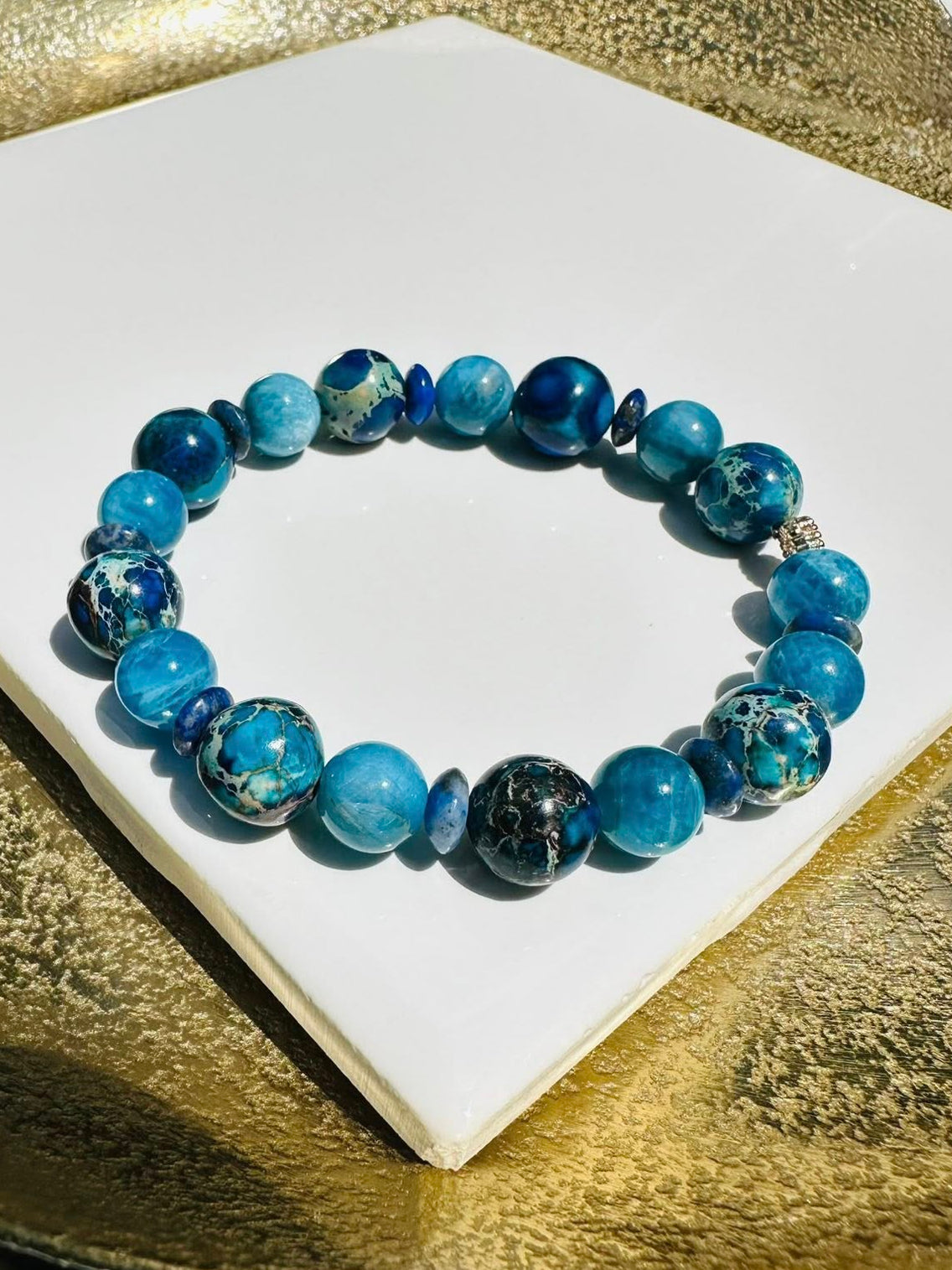 Add Denim Lapis Rondelle, Pacific Blue Apatite 8mm & Sediment Imperial 10mm with a gold spacer to the cart