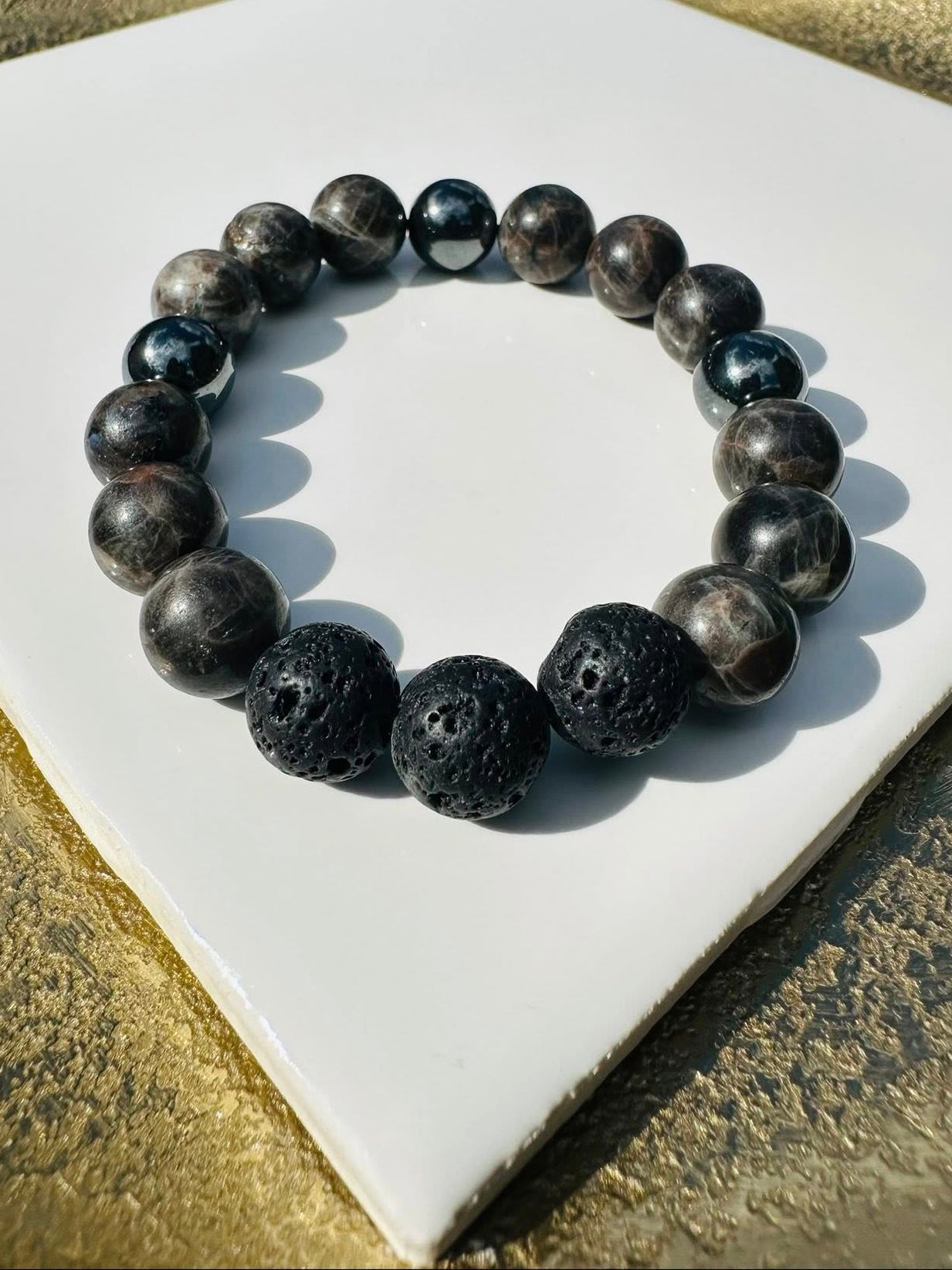 Add Natural Dark Chocolate Labradorite, Hematite, and 3 Lava beads 10mm to the cart