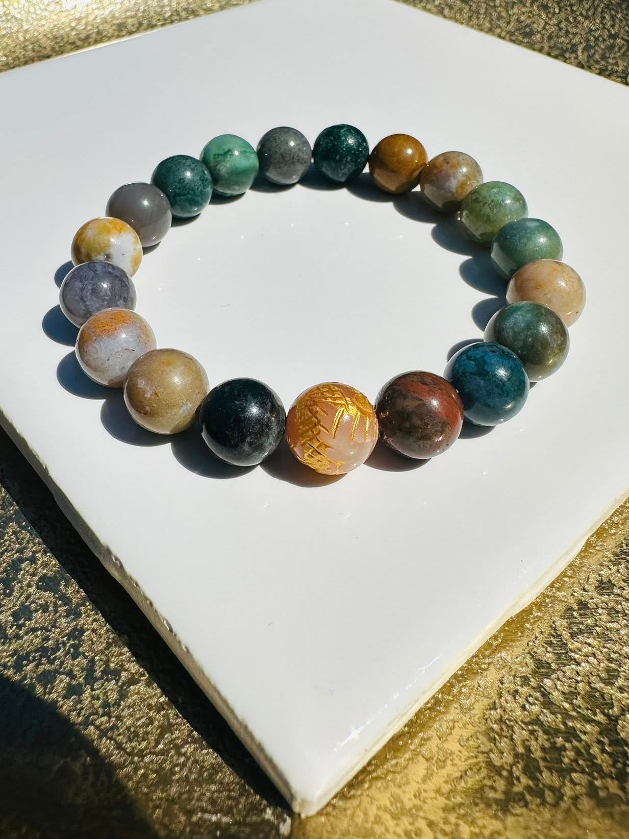 Add Earthline-Natural Indian Agate & Natural Australian Outback Jasper Beads 10mm to the cart