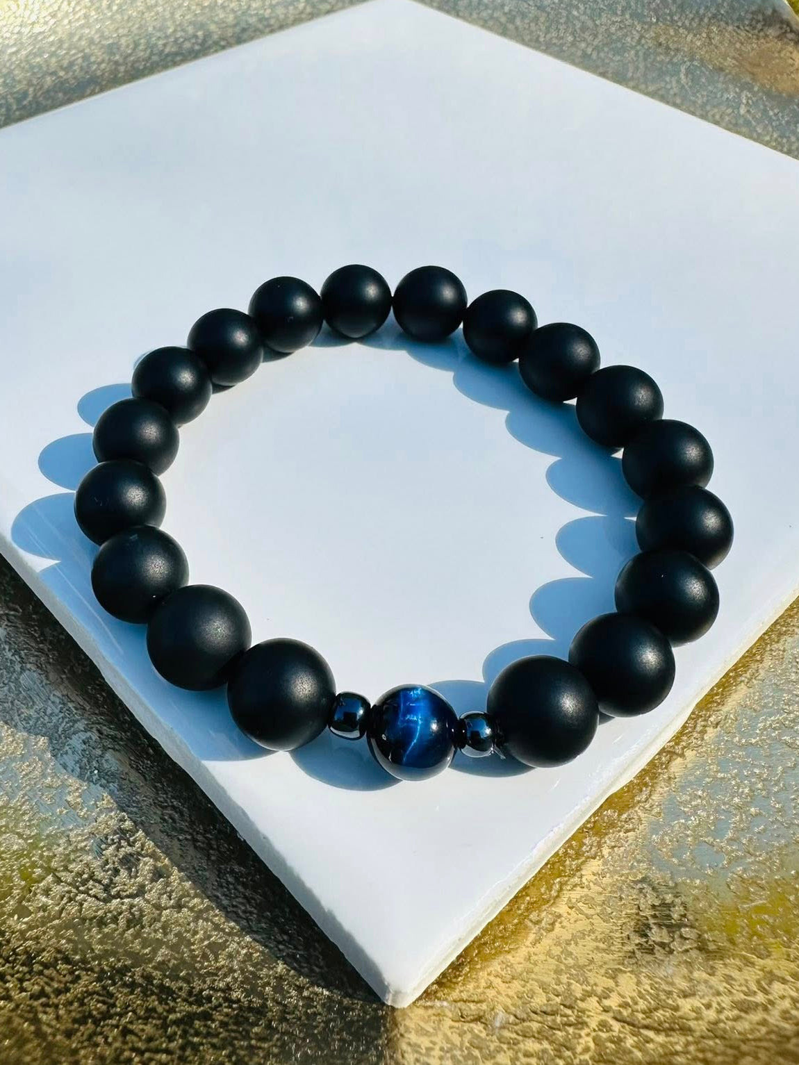 Add Shadow Tide- Matte Black Onyx beads 10mm and A Blue Tiger Eye bead 8mm with two seed spacers to the cart
