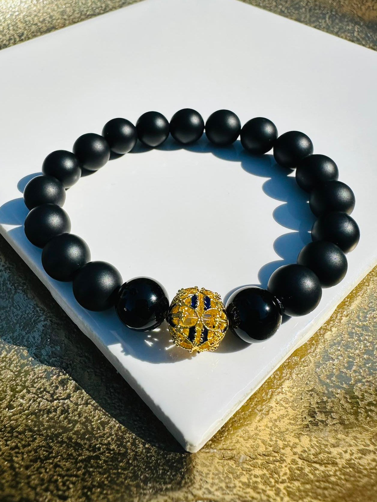 Add Midnight Crown-Matte Black Onyx beads 10mm, two polished Black Onyx with the center, a gold-plated spacer bead to the cart