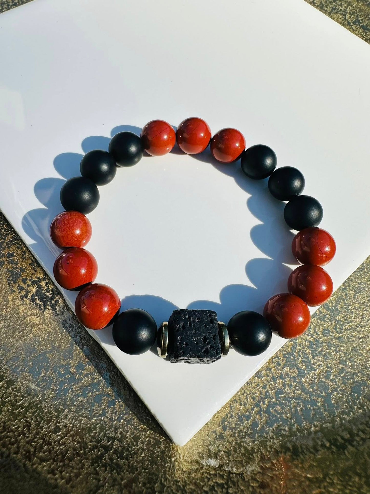 Add Rooted Ember-Red Jasper with Black Onyx matte and one Lava Cube 10mm with 2 pyrites spacers to the cart